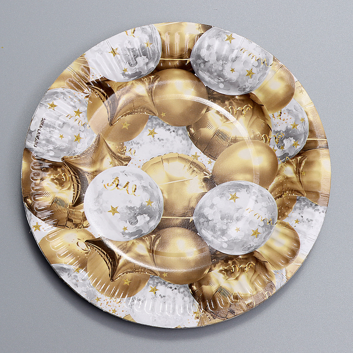 Тарелка бумажная «С днём рождения», горох, в наборе 6 шт., цвет золото