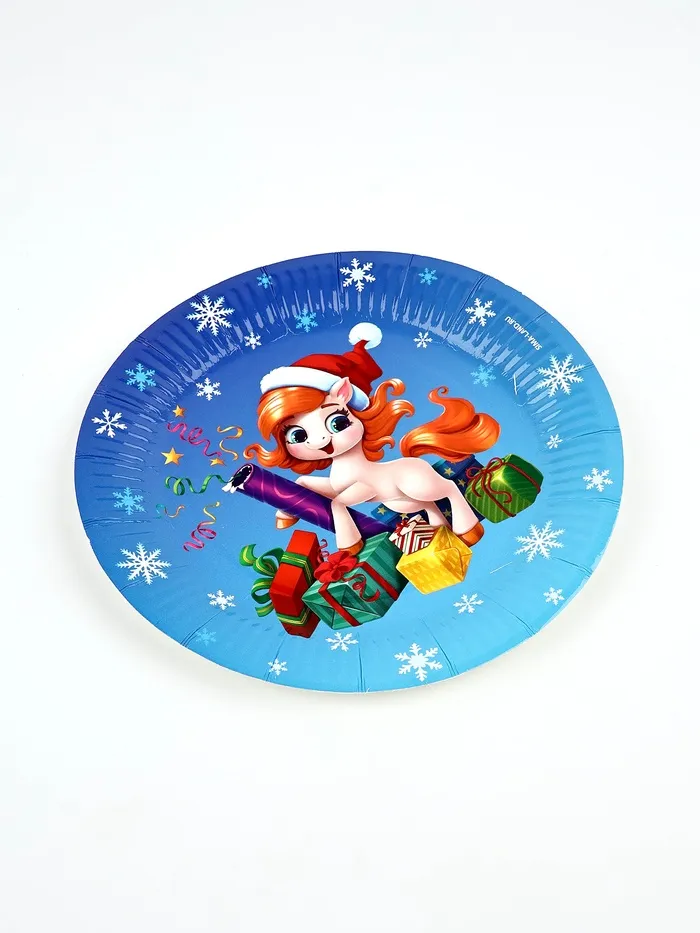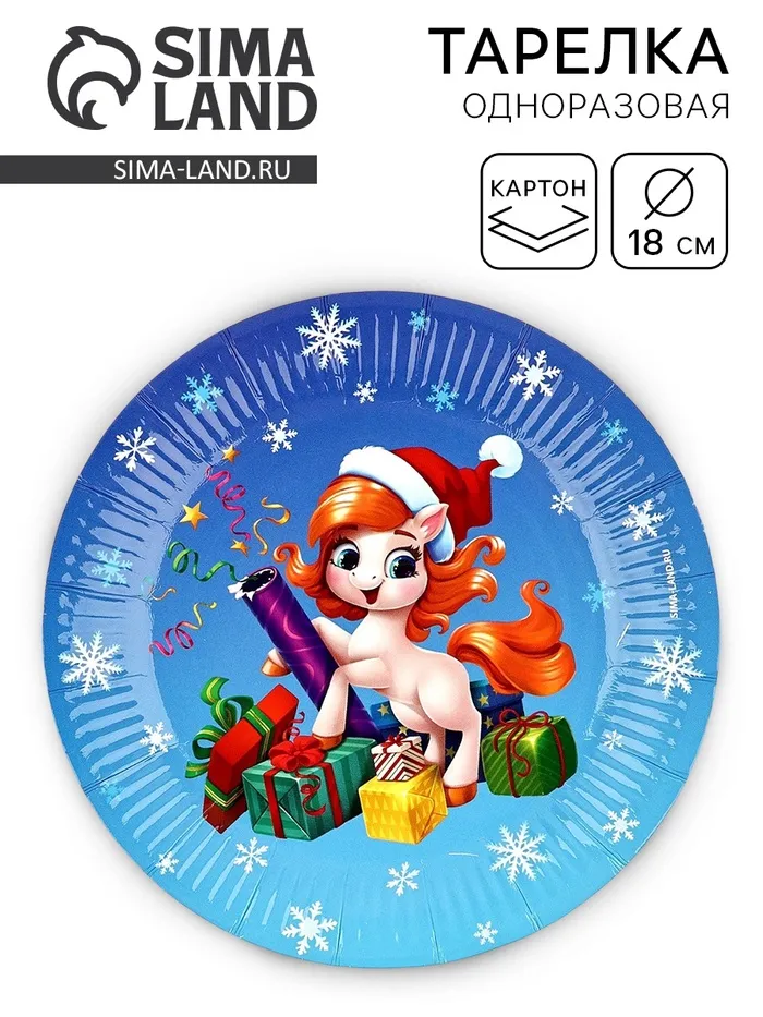 Тарелка одноразовая новогодняя «Лошадка в шапке», 18 см — Характеристики