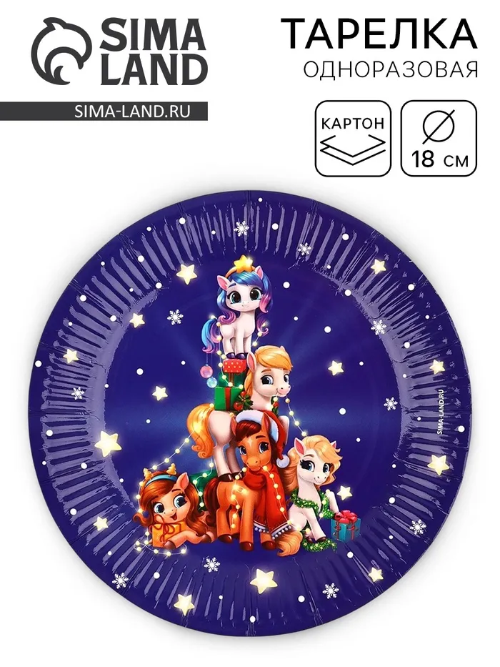 Тарелка одноразовая новогодняя «Пони с подарками», 18 см — Характеристики