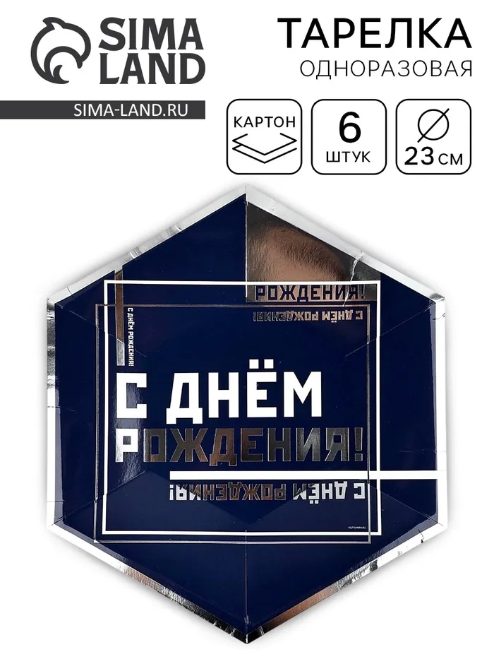 Тарелка одноразовая «С днем рождения», 23 см, 6шт. — Характеристики