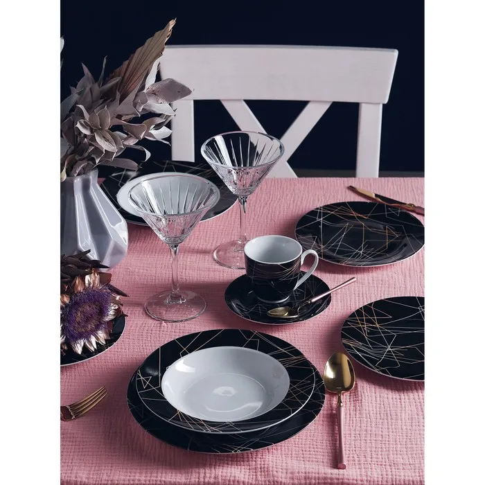 Необычная серия посуды из керамики Доляна «Кассиопея» точно удивит ваших близких за праздничным столом! Необычный дизайн, тонкие линии, насыщенный чёрный цвет придают изделиям особенный вид. Посуда из керамики обладает прочностью и выдерживает резкие перепады температур.