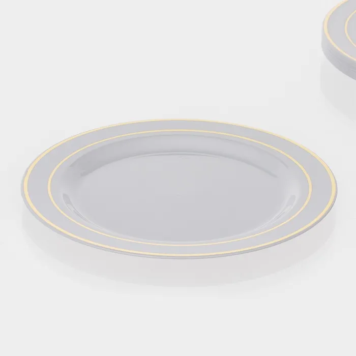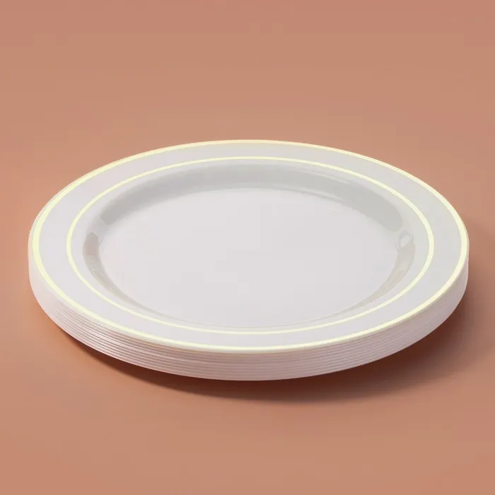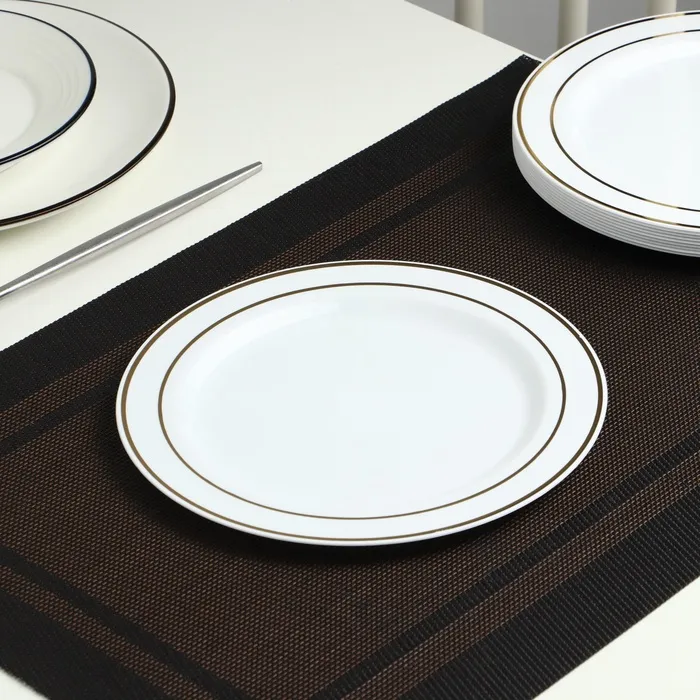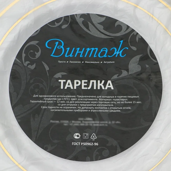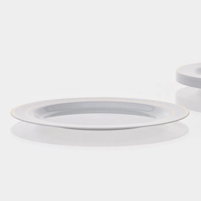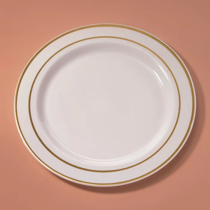 Тарелка пластиковая одноразовая, 19 см, круглая, плоская, белая с золотой каёмкой — Характеристики
