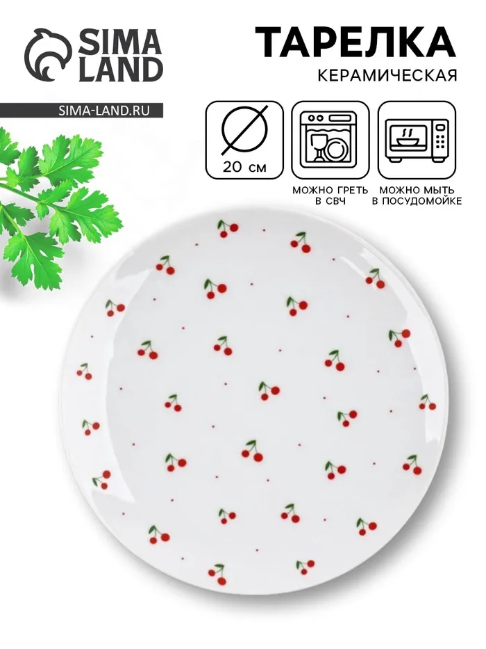 Тарелка плоская керамическая «Вишня», d=20 см — Характеристики