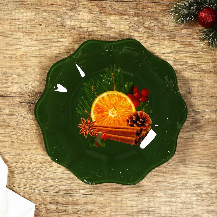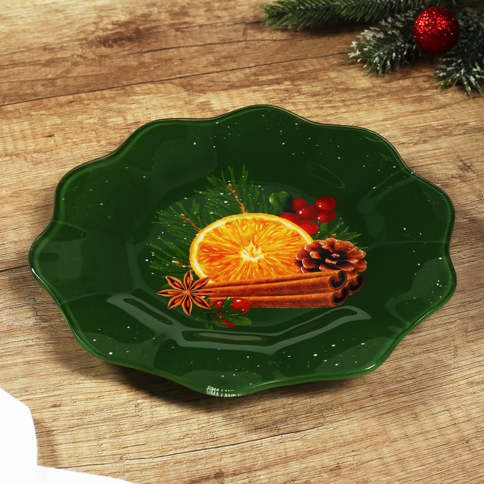 Новогодняя стеклянная тарелка размером 20 см — идеальный выбор для сервировки стола.