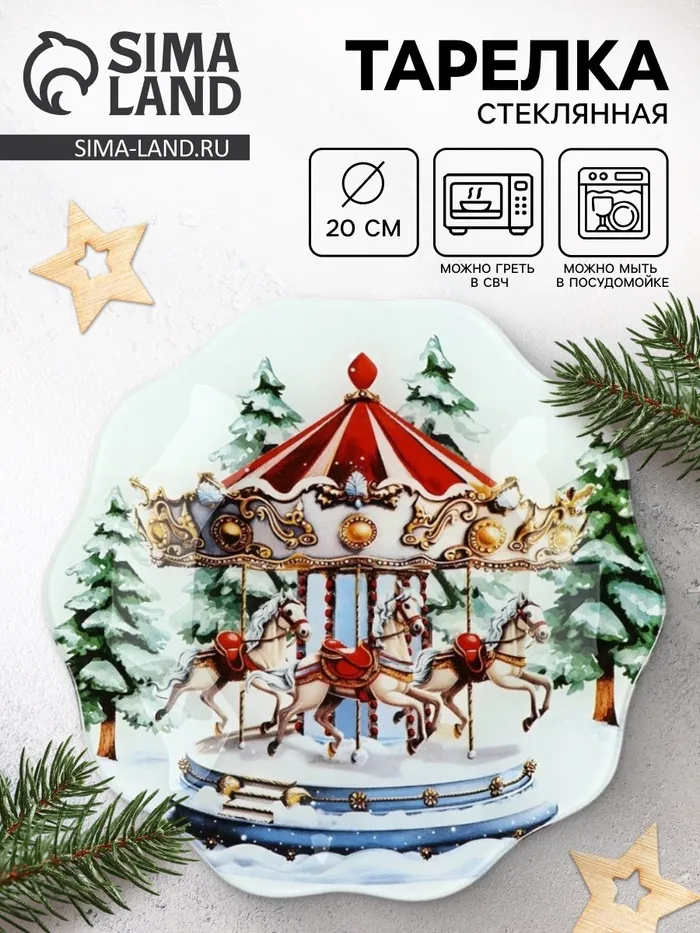 Тарелка плоская новогодняя «Карусель», d=20 см, стекло — Характеристики