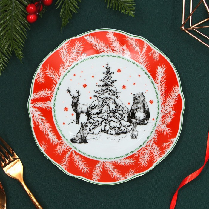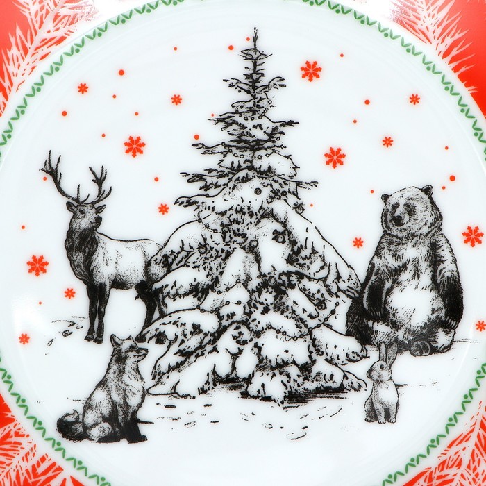 Тарелка плоская новогодняя «Лесные жители», d=19 см — Характеристики