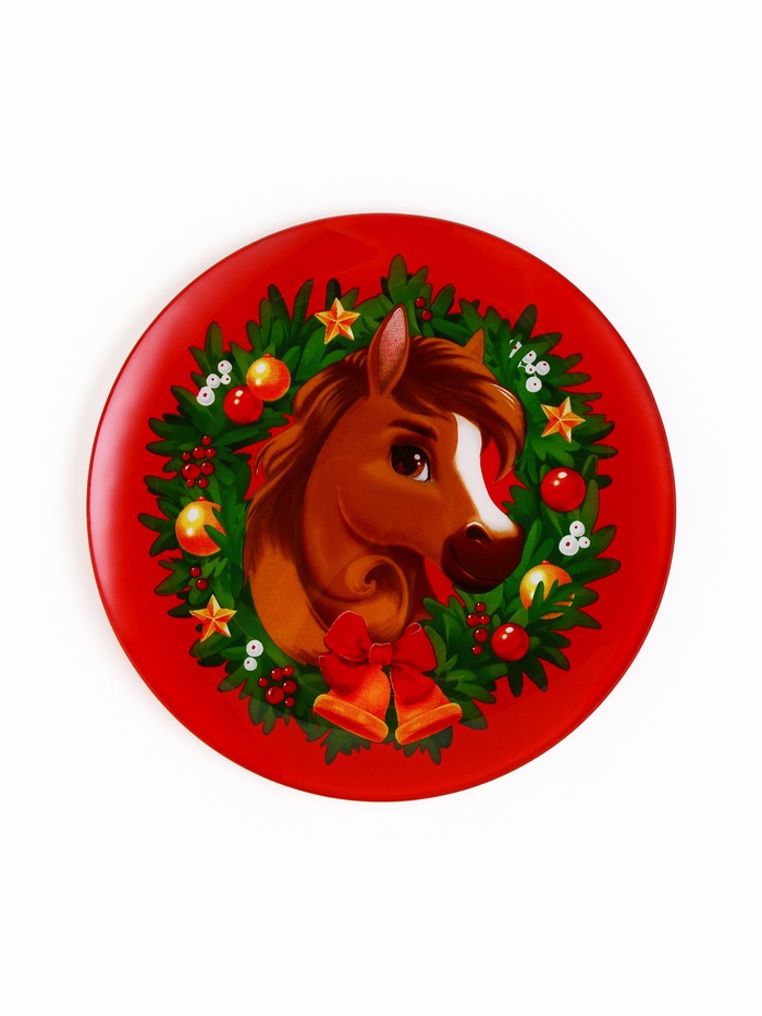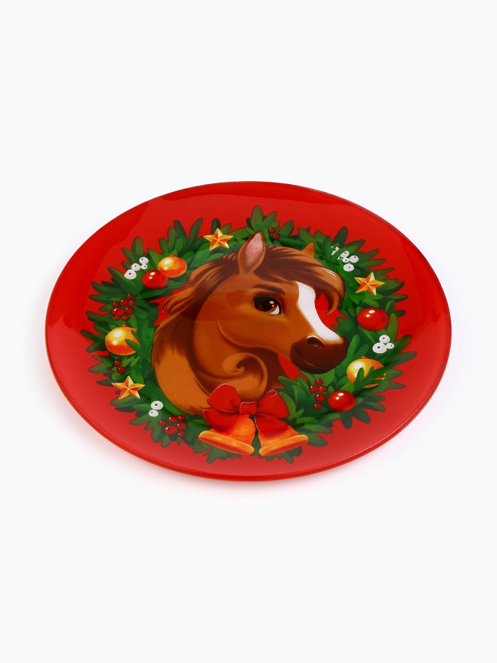 Тарелка плоская новогодняя «Лошадь», d=20 см, стекло — Характеристики