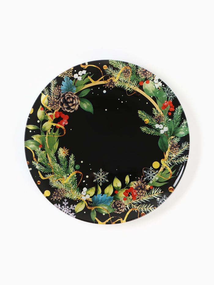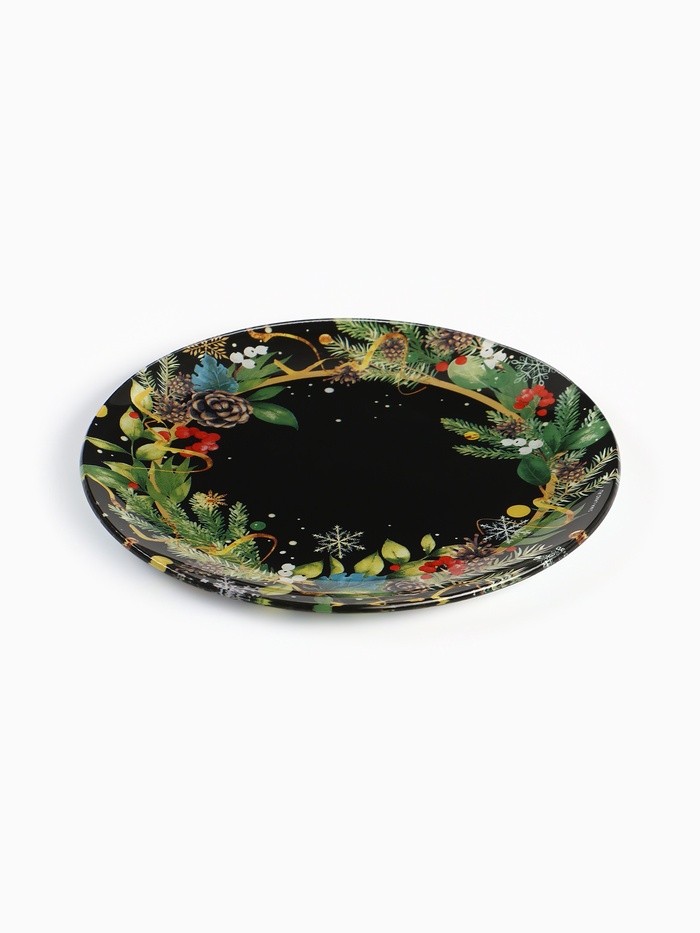 Новогодняя стеклянная тарелка диаметром 20 см — идеальный выбор для сервировки стола.