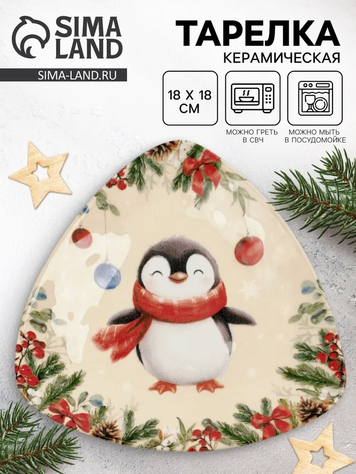 Тарелка плоская новогодняя «Пингвин», 18×18 см, керамика — Характеристики