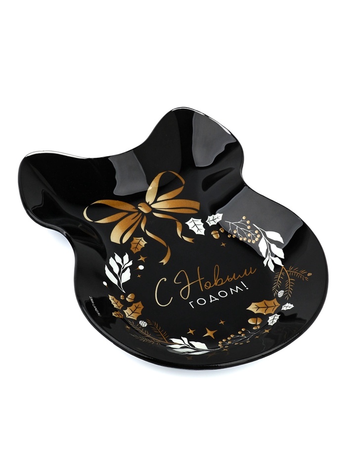 Новогодняя стеклянная тарелка в форме банта размером 13,5 x 18 см — это стильное и функциональное украшение для вашего праздничного стола.