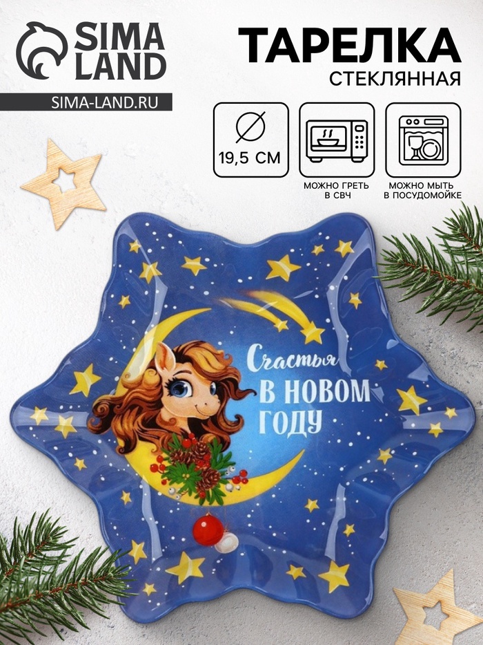 Тарелка плоская новогодняя «Счастья в Новом году», 19.5 см, стекло — Характеристики