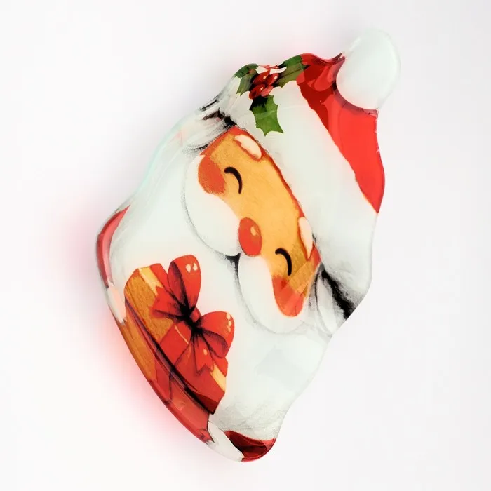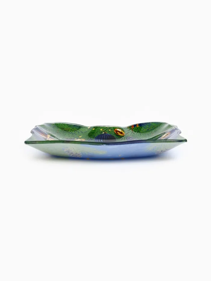 Новогодняя стеклянная тарелка в форме подарка — идеальный выбор для сервировки стола.
