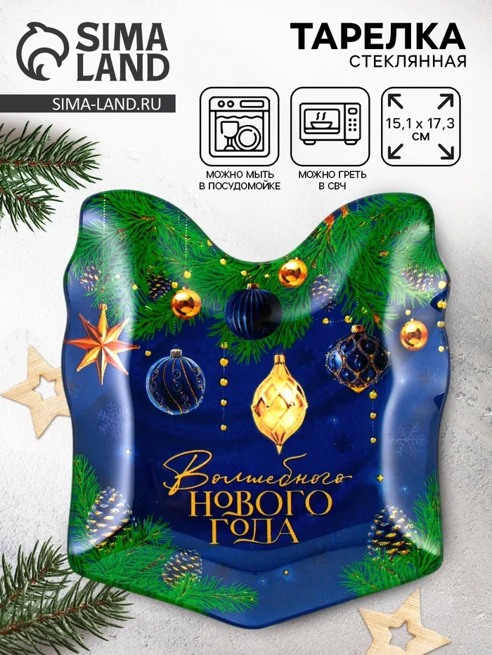 Тарелка плоская новогодняя «Волшебного года», 15.1×17.3 см, стекло — Характеристики
