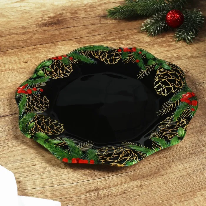 Новогодняя стеклянная тарелка размером 23 см — идеальный выбор для сервировки стола.