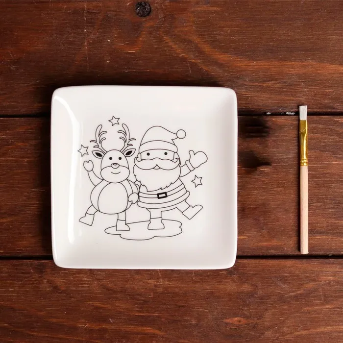 Тарелка под роспись «Олень и Дед Мороз», кисть — Характеристики