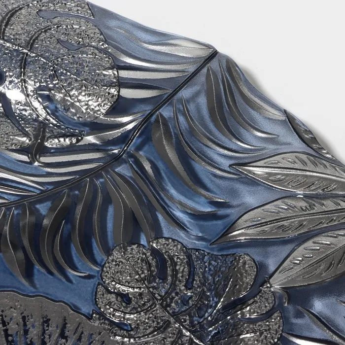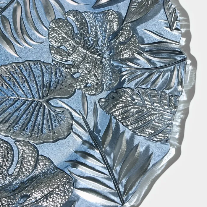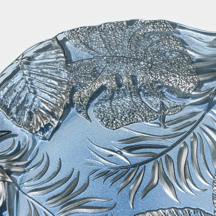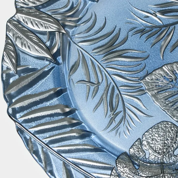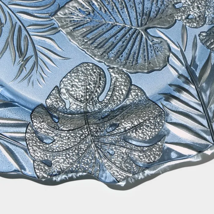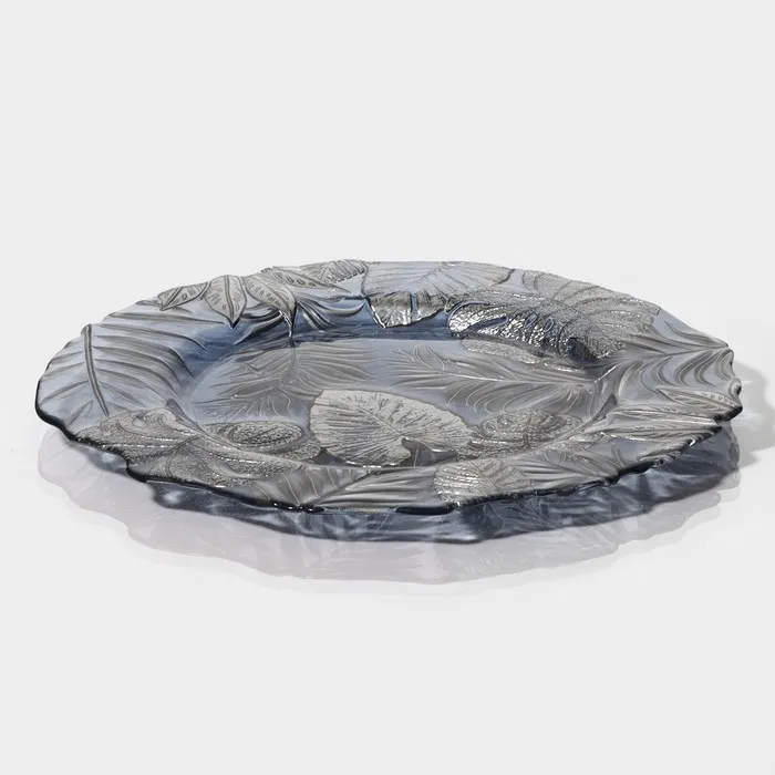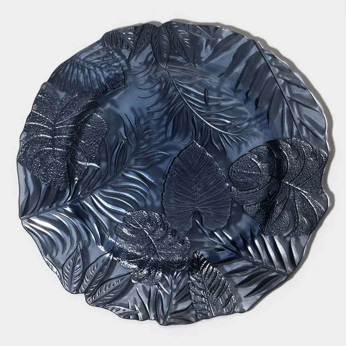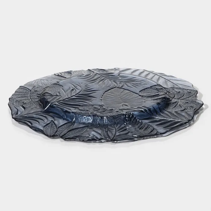 Изготовленная из качественного стекла, тарелка обладает рельефной текстурой и оригинальным растительным орнаментом, который добавляет ей уникальности.