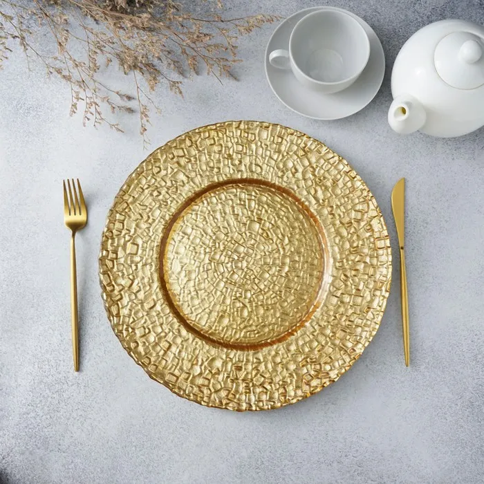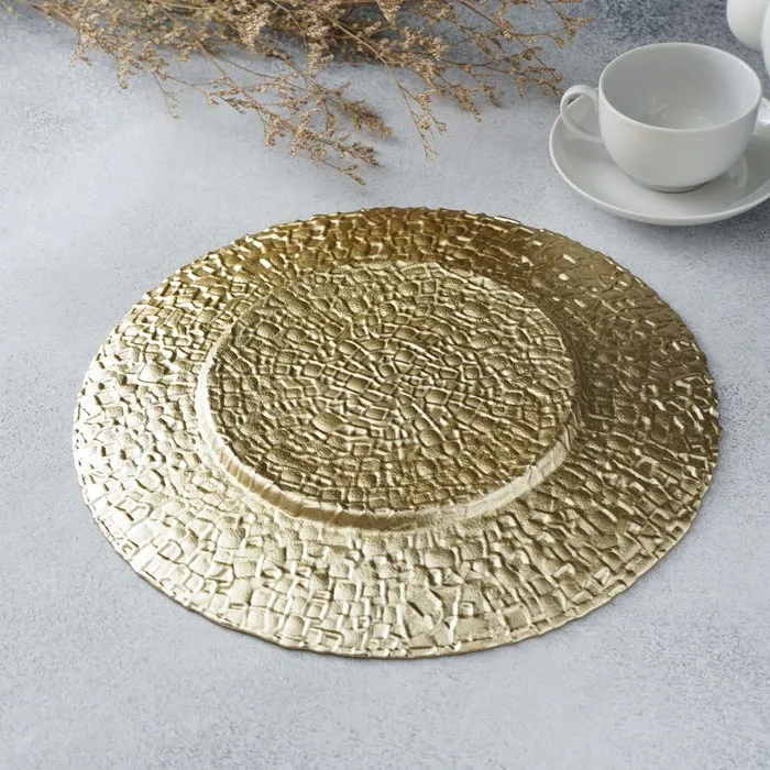 Тарелка подстановочная Magistro «Кринкл», d=33 см, стекло, золотистая — Характеристики