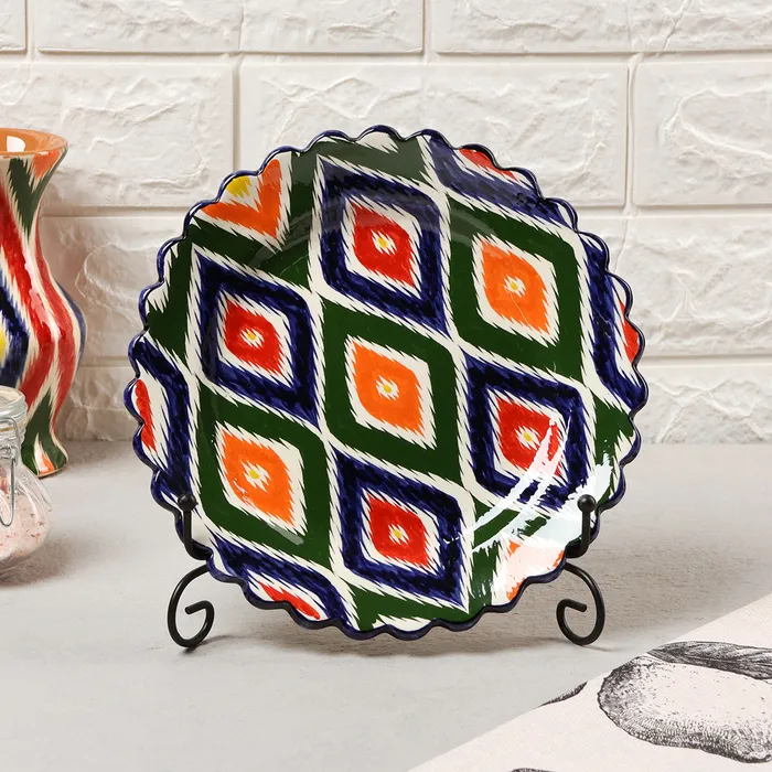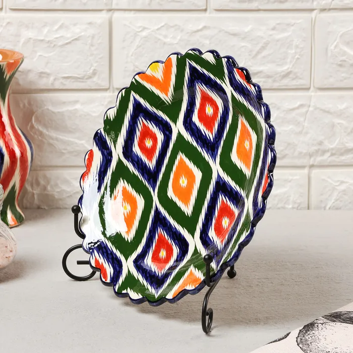 Тарелка Риштанская Керамика «Атлас», d=23 см, керамика, рифлёный край, разноцветная — Характеристики