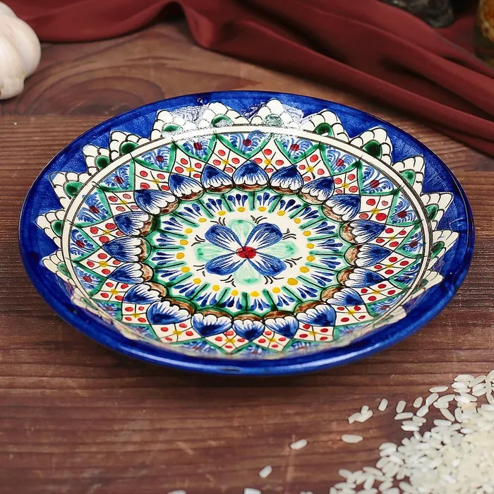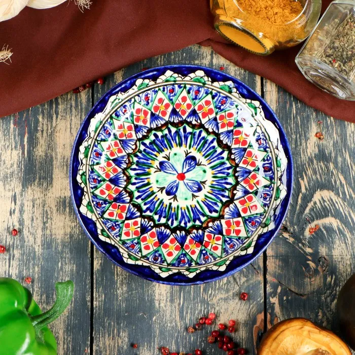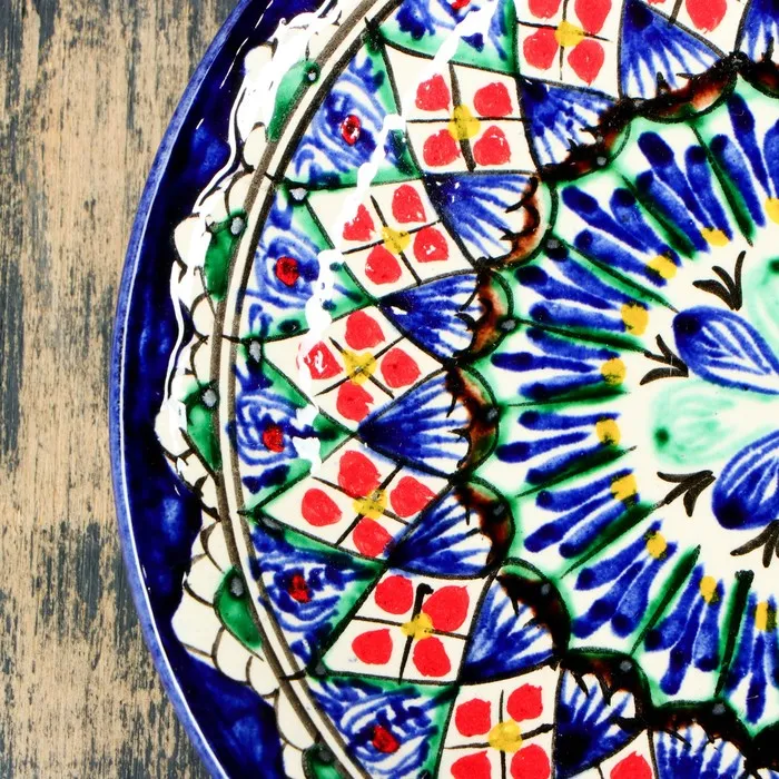 Тарелка Риштанская Керамика «Цветы», d=15 см, керамика, синяя — Характеристики