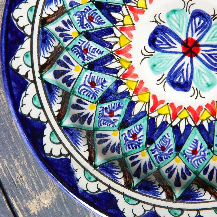 Тарелка Риштанская Керамика «Цветы», d=17 см, керамика, синяя — Характеристики