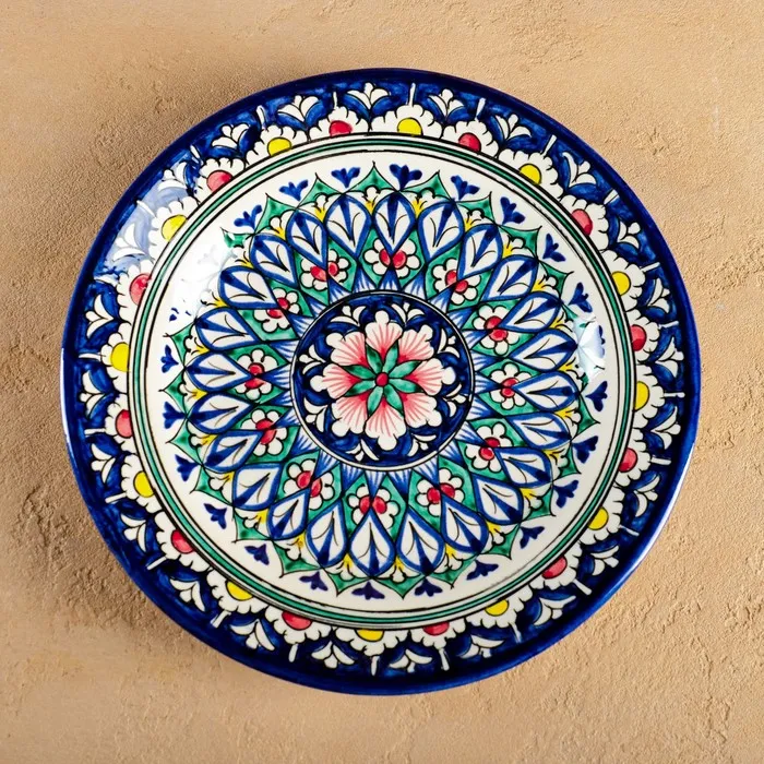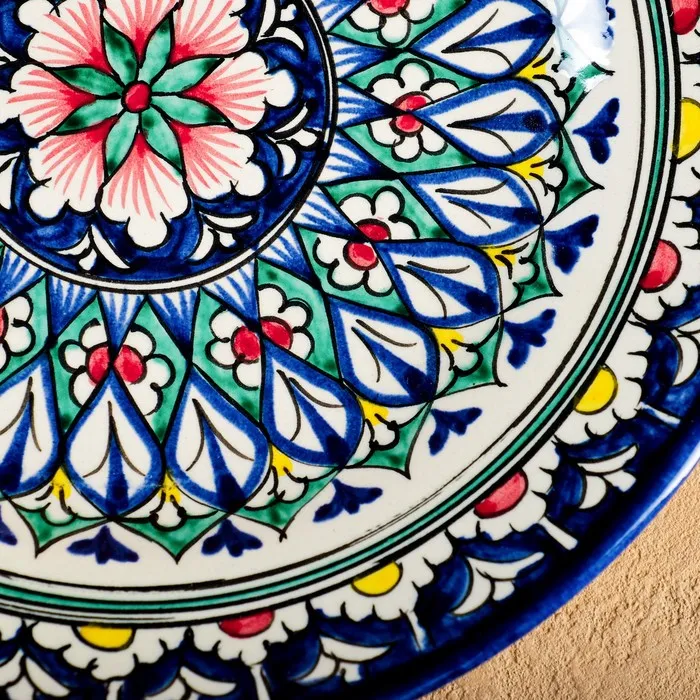 Тарелка Риштанская Керамика «Цветы», d=23 см, керамика, синяя — Характеристики