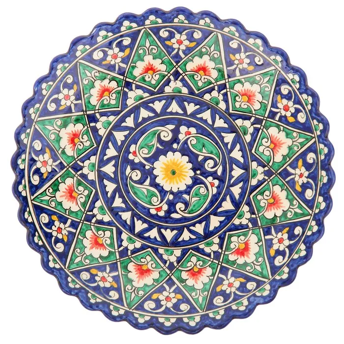 Тарелка Риштанская Керамика «Цветы», d=25 см, рифлёный край, керамика, синяя — Характеристики