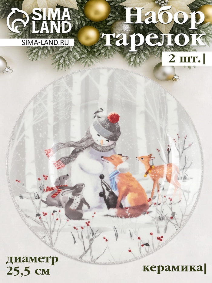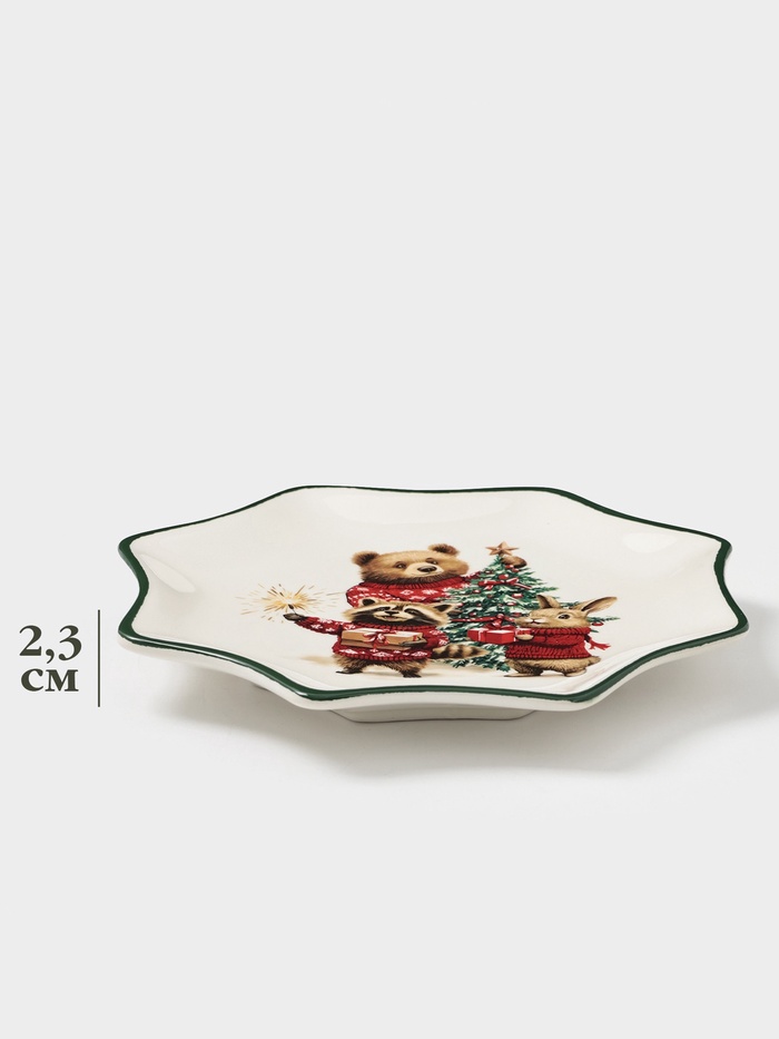 Тарелка сервировочная новогодняя Доляна «Сказки зимнего леса», 20×20×2.3 см, доломит, белая — Характеристики