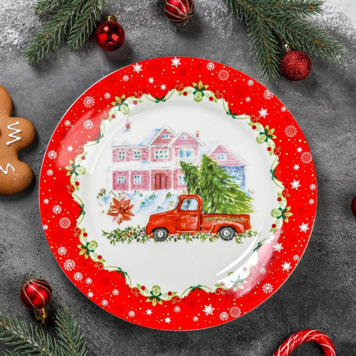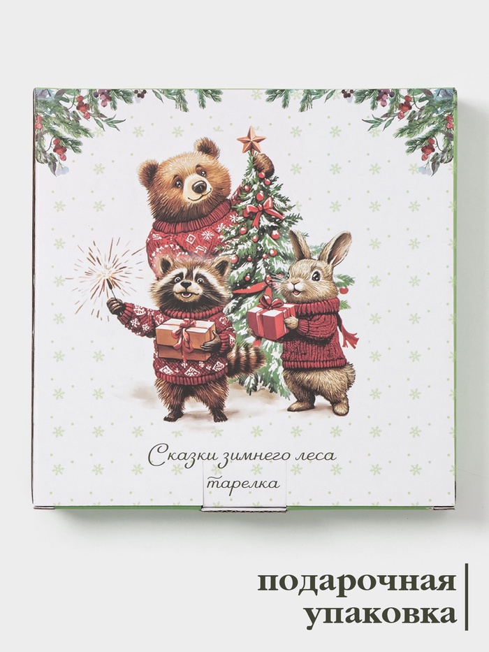 Тарелка сервировочная новогодняя Доляна «Сказки зимнего леса», 20×20×2.5 см, доломит, белая — Характеристики