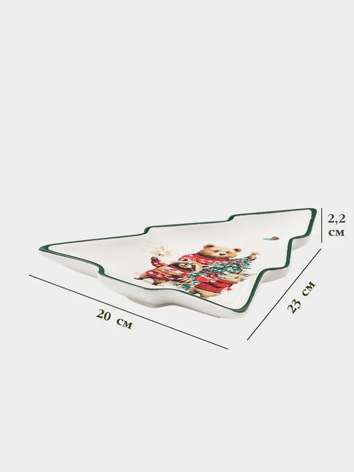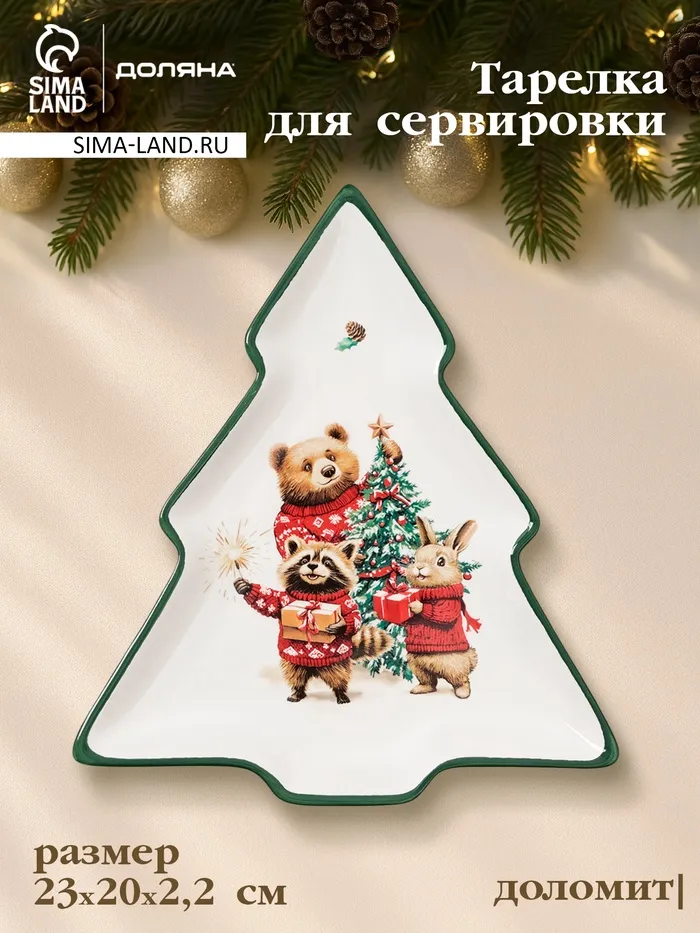 Тарелка сервировочная новогодняя Доляна «Сказки зимнего леса», 23×20×2.2 см, доломит, белая — Характеристики