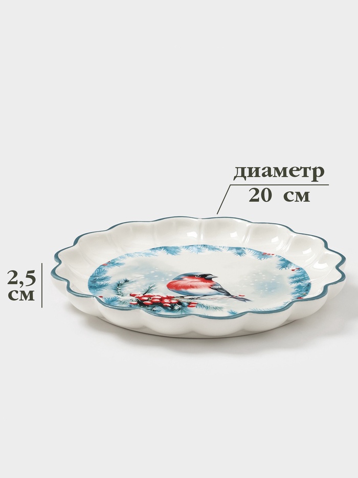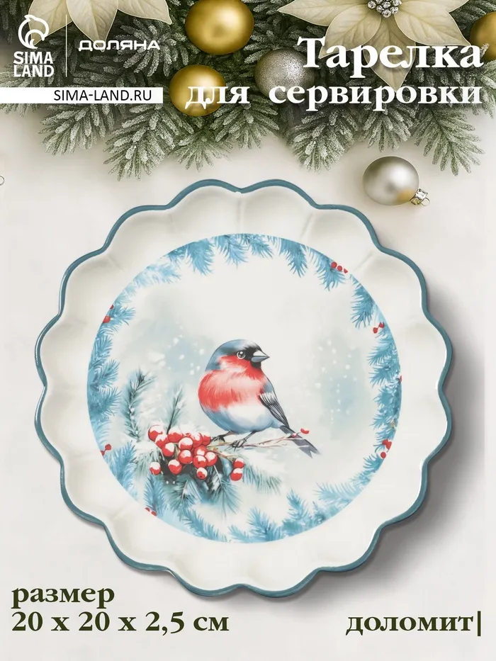 Тарелка сервировочная новогодняя Доляна «Зимний вечер», 20×20×2.5 см, доломит, белая — Характеристики