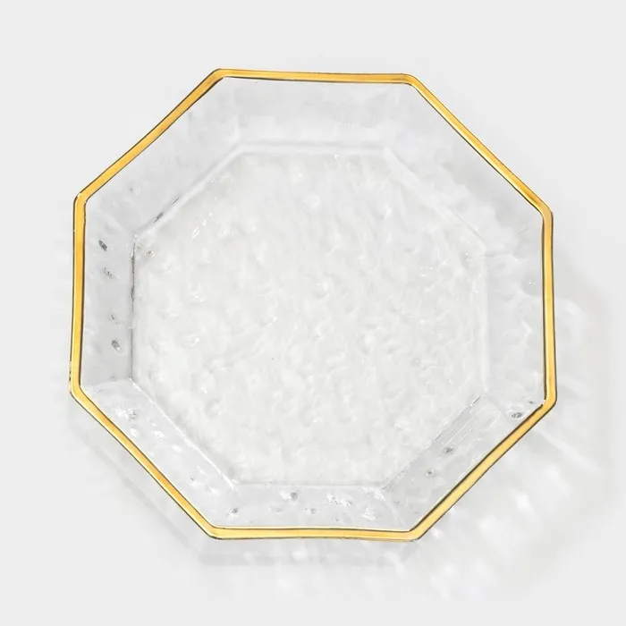 Тарелка стеклянная «Иней. Золото», d=17 см, цвет прозрачный с золотой отводкой — Характеристики