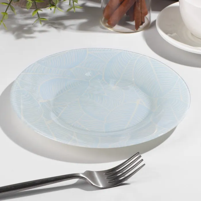 Тарелка стеклянная «Ливс», d=19,5 см, цвет голубой — Характеристики