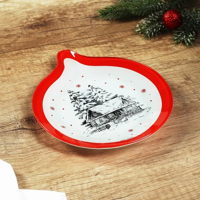 Тарелка в форме ёлочной игрушки размером 15,4 х 18 см — это стильное и оригинальное решение для вашей кухни! Благодаря своей необычной форме и яркому дизайну, она станет настоящим украшением вашего стола и создаст атмосферу праздника.