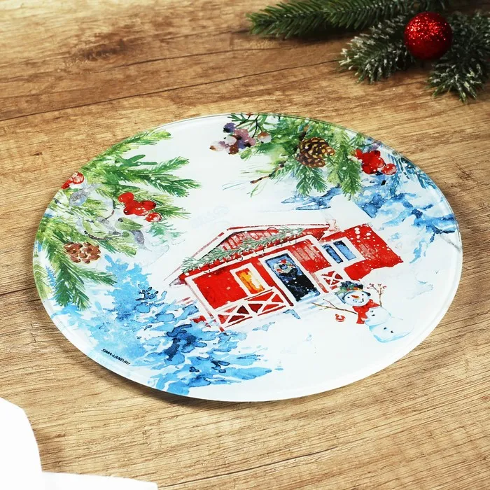 Тарелка стеклянная новогодняя «Новогодняя акварель», 20 см — Характеристики