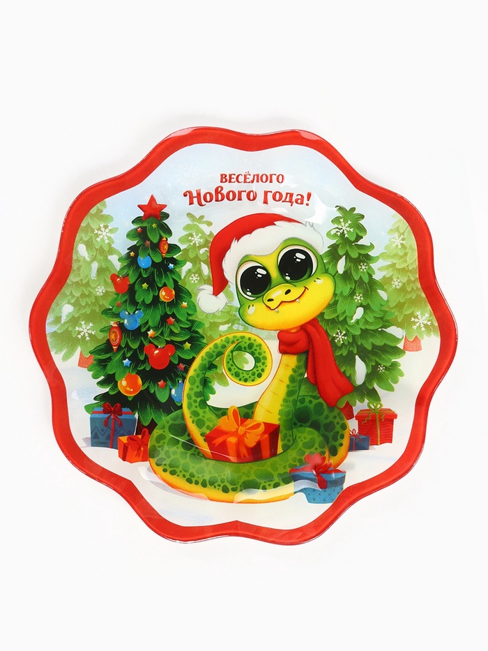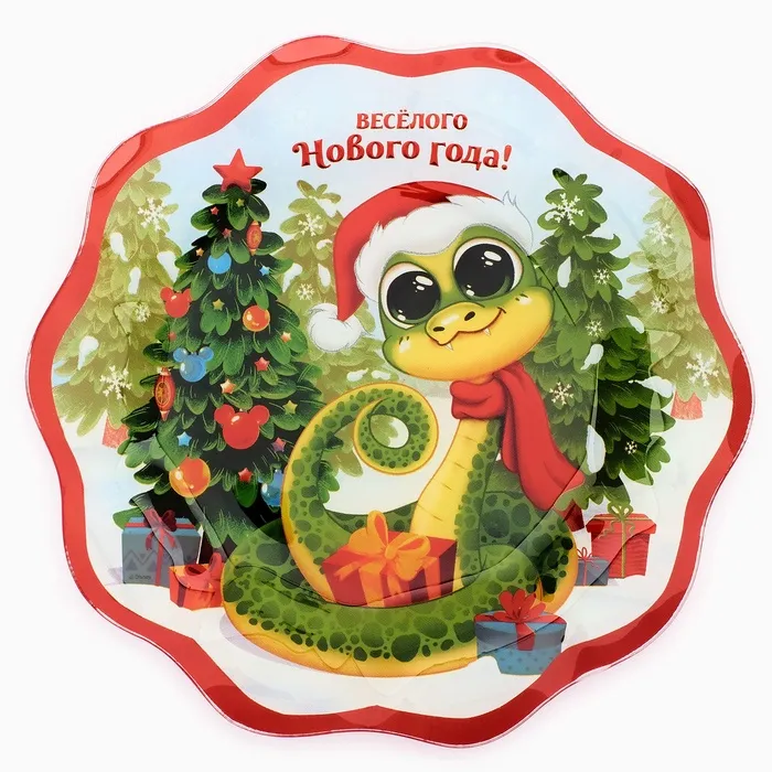 Тарелка стеклянная новогодняя «Веселого Нового года!», Микки Маус, 23 см