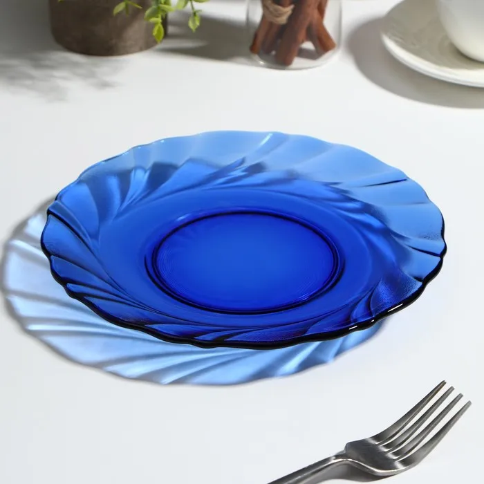 Тарелка стеклянная плоская Sea Brim, d=21 см, стекло, цвет синий — Характеристики