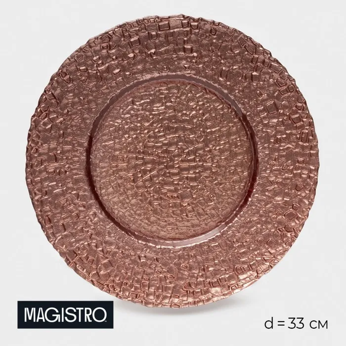 Тарелка стеклянная подстановочная Magistro «Кринкл», d=33 см, цвет розовый — Характеристики