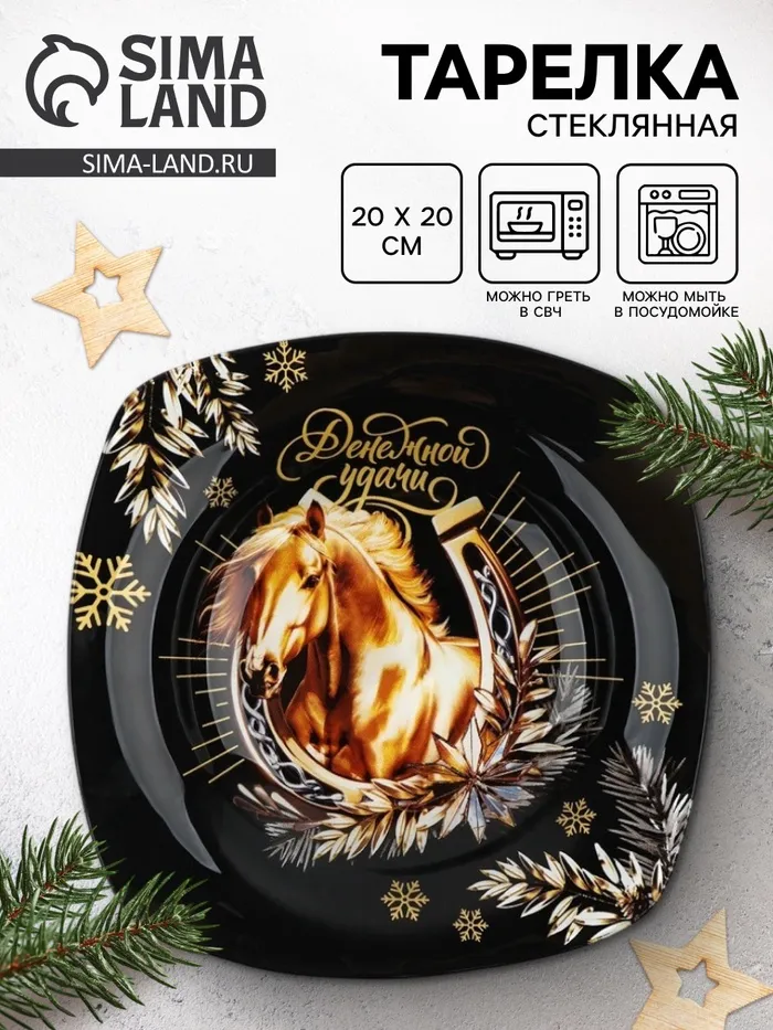 Тарелка суповая новогодняя «Денежной удачи», 20×20 см, стекло — Характеристики