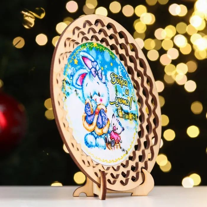 Тарелка сувенирная «Год Кролика. Добра и уюта», дерево, ламинация, d=13 см — Характеристики