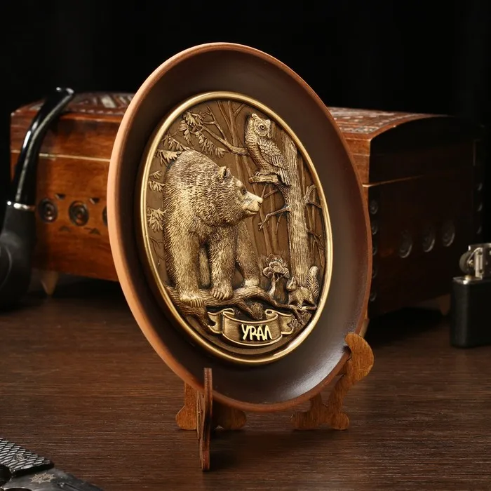 Тарелка сувенирная "Медведь,сова и белка", керамика, гипс, d=16 см — Характеристики