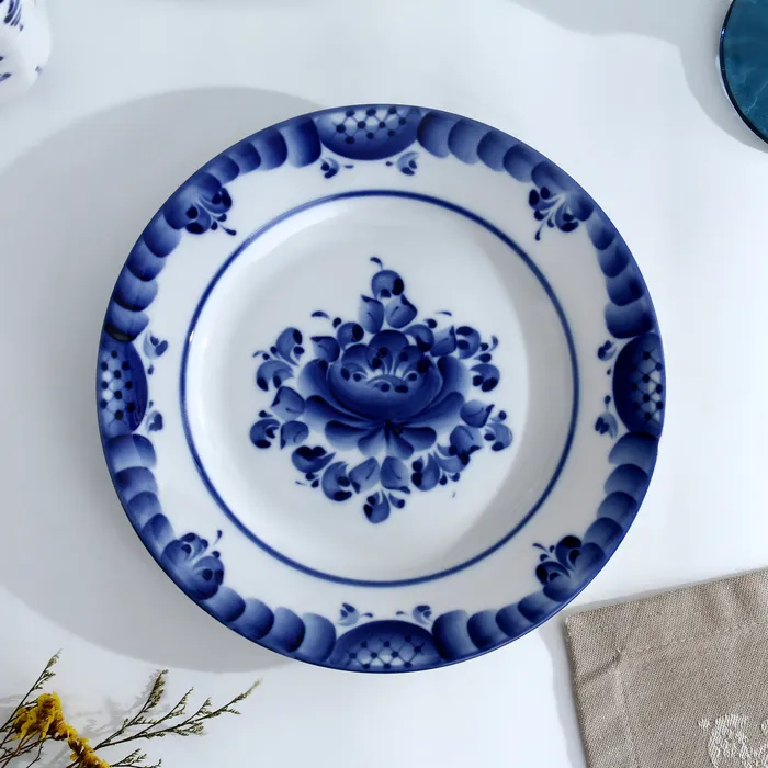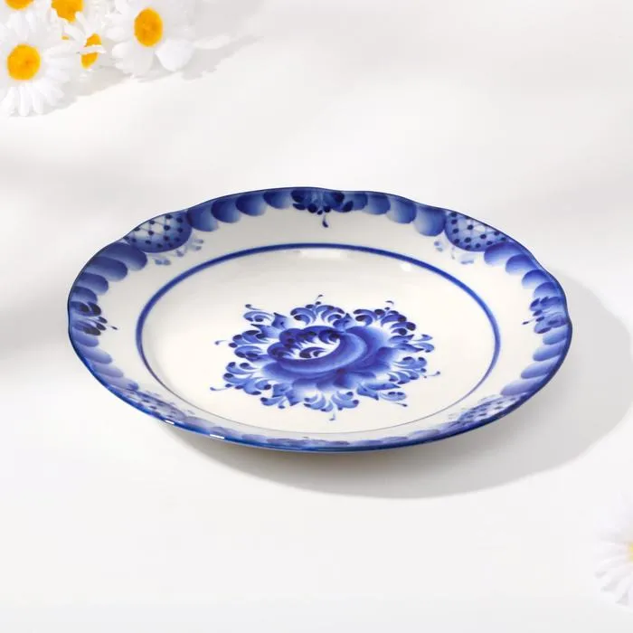 Тарелка «Цветы», плоская, D=20 см, гжель — Характеристики