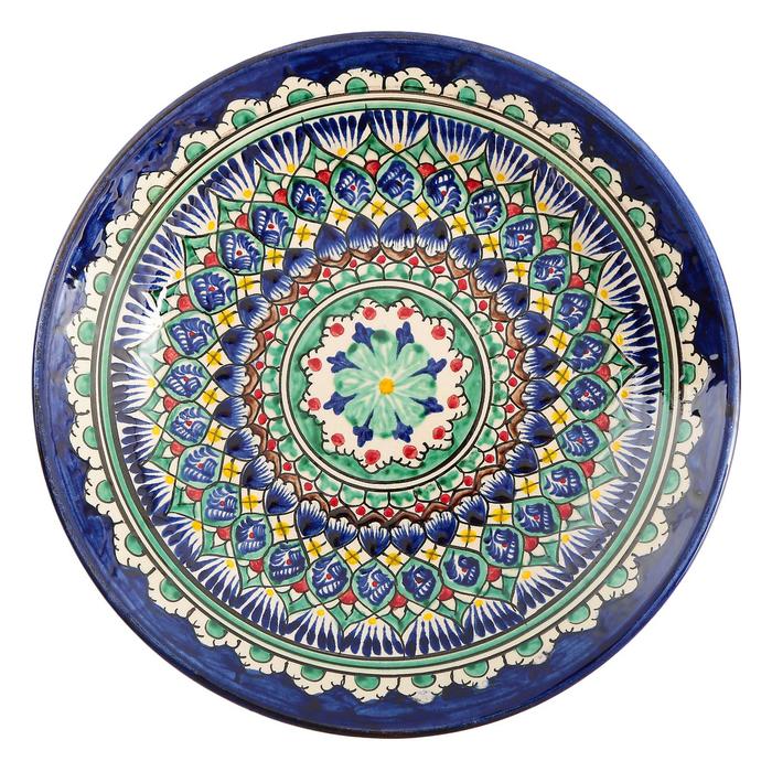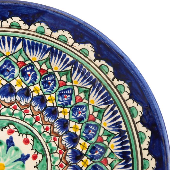 Тарелка узбекская Риштанская Керамика «Орнамент», d=22 см, синяя — Характеристики
