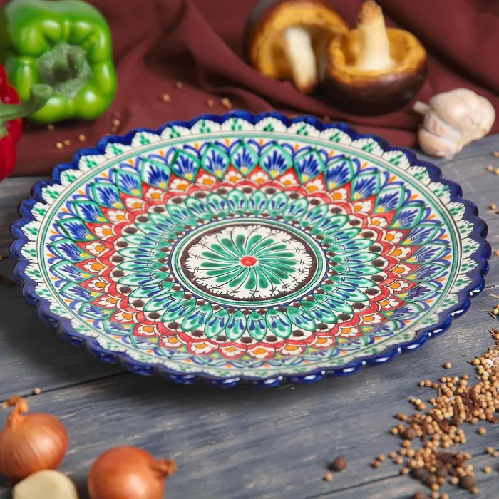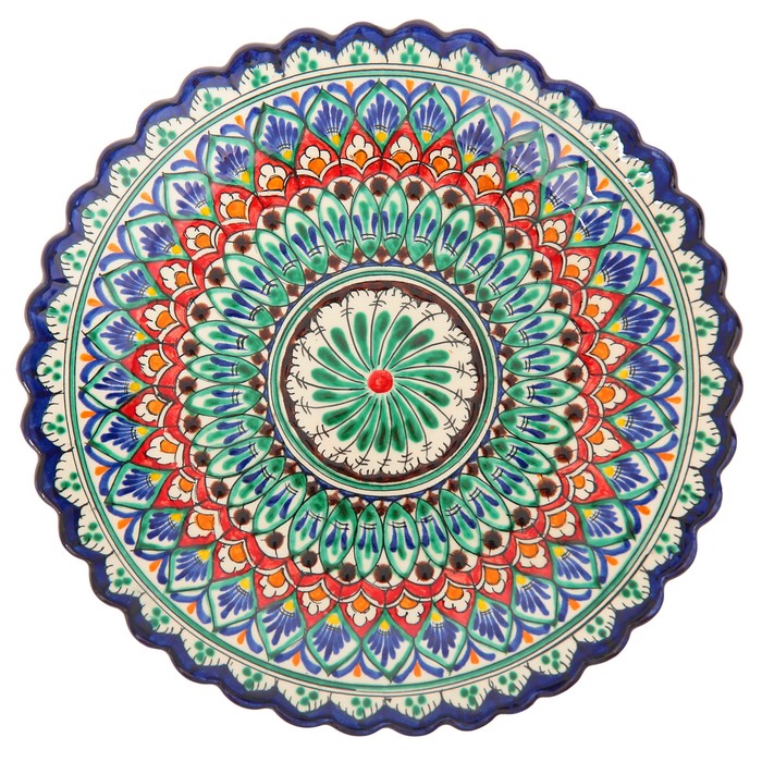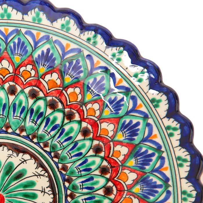 Тарелка узбекская Риштанская Керамика «Цветы», рельефная, d=25 см синяя — Характеристики