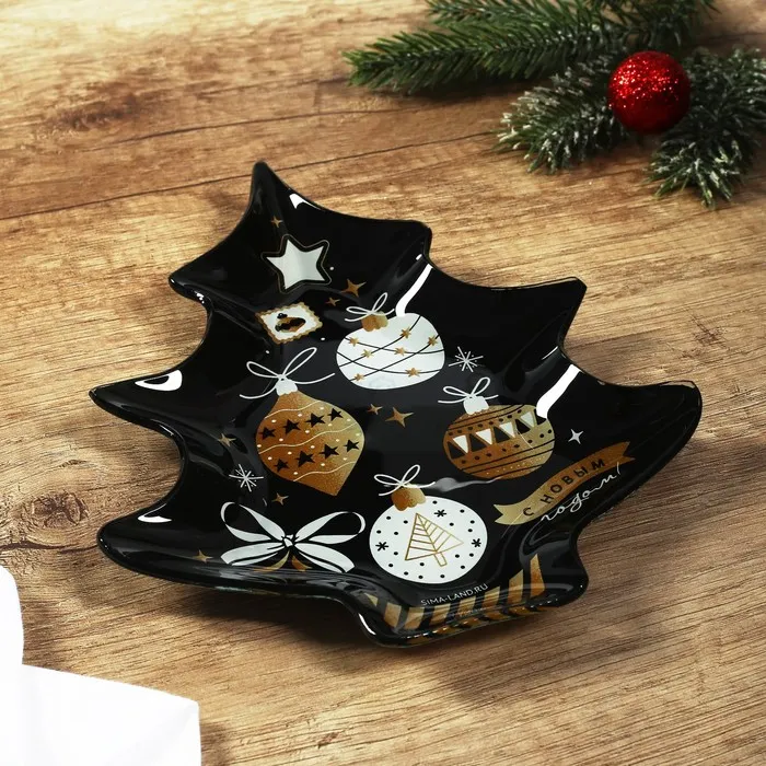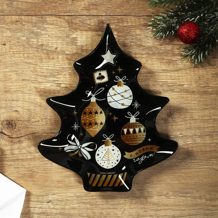 Тарелка в форме ёлки новогодняя «С Новым годом. Игрушки», 19.5×16.5 см, стекло — Характеристики