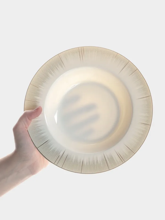 Эта тарелка - не просто предмет посуды, а настоящее украшение вашего стола. Изготовленная из тонкого костяного фарфора, она легка и изящна. Золотая отводка придает ей особый шарм и делает ее идеальной для особых случаев. Бережная ручная мойка позволит сохранить красоту изделия на долгие годы, напоминая о ценности момента.