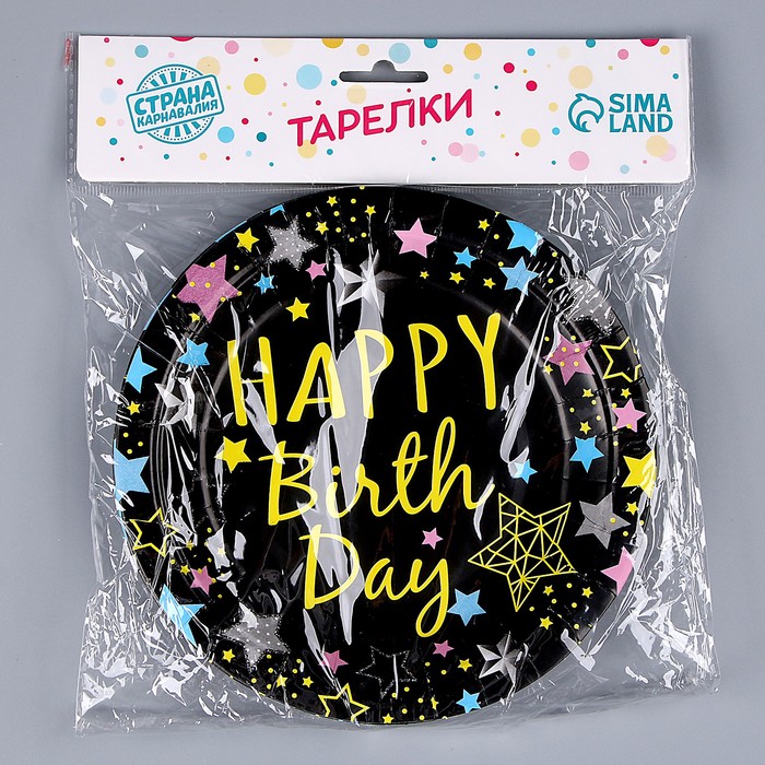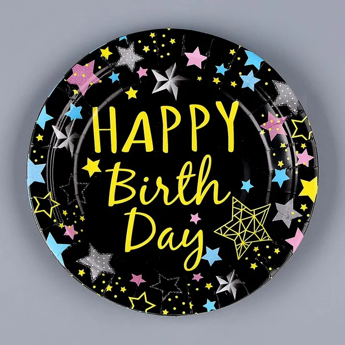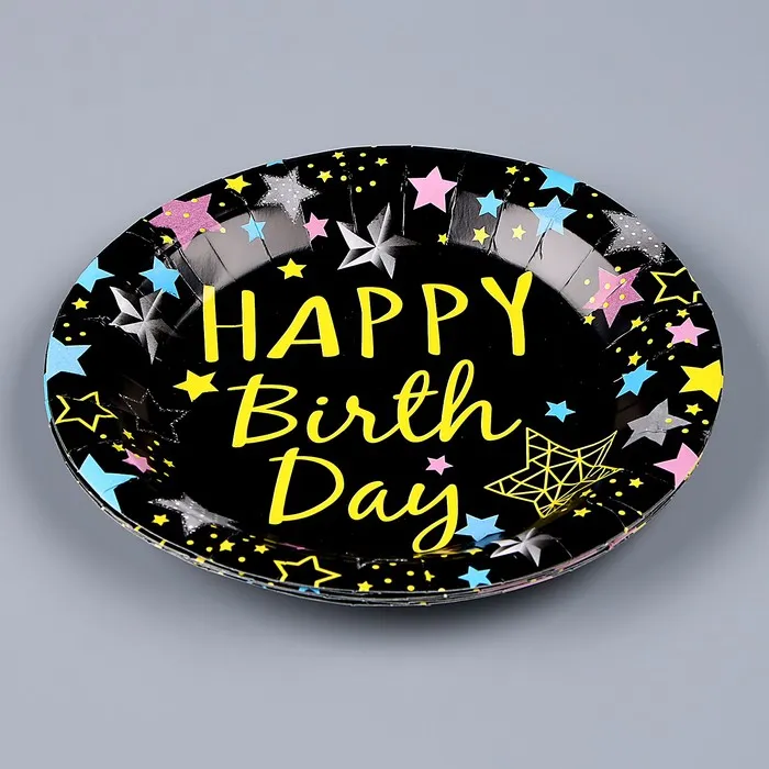 Тарелки бумажные одноразовые «С днём рождения», набор 6 шт., чёрные — Характеристики