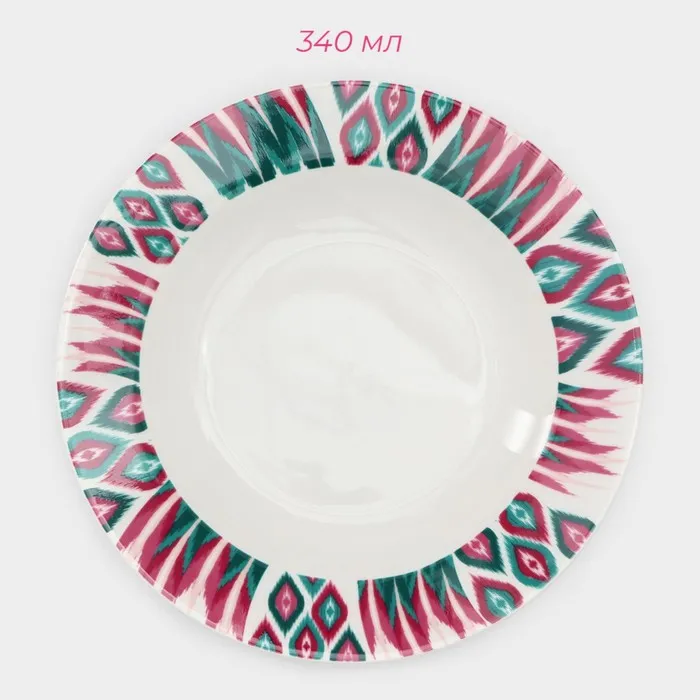Тарелки Доляна Askım, 18 предметов: 6 тарелок d=20 см, 6 тарелок d=25 см, 6 тарелок глубоких 340 мл, фарфор, разноцветные — Характеристики