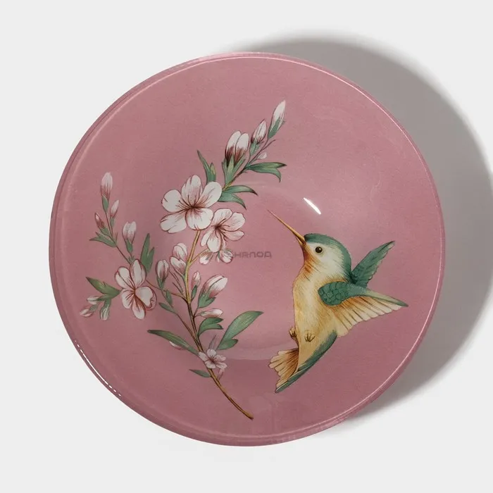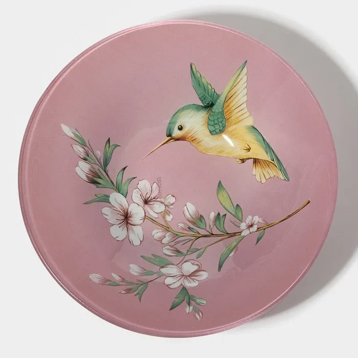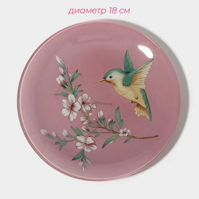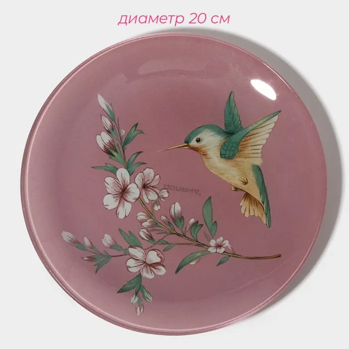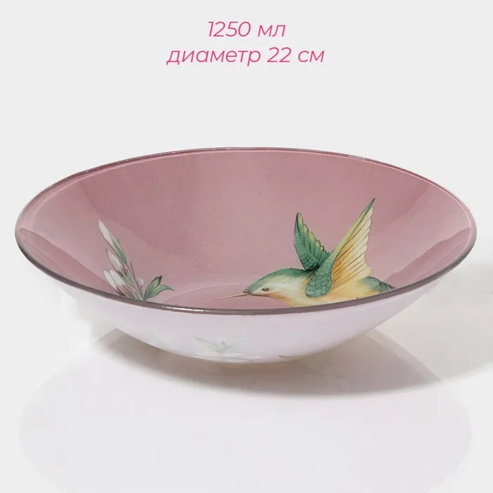 Тарелки Доляна «Колибри», 19 предметов: 6 десертных тарелок, 6 обеденных тарелок, 6 мисок, салатник, стекло, розовые — Характеристики