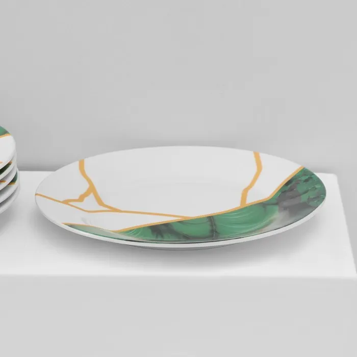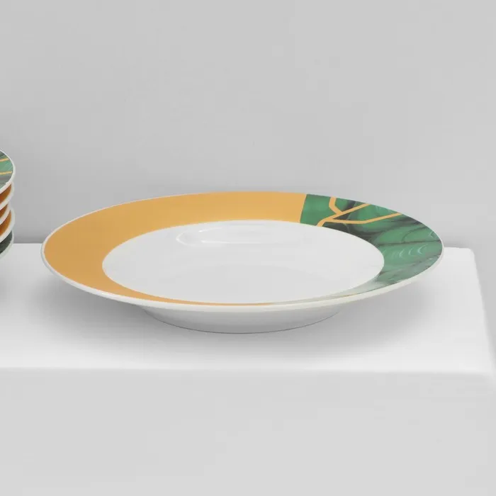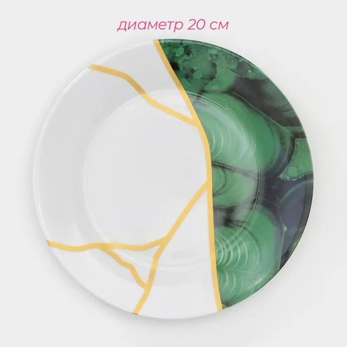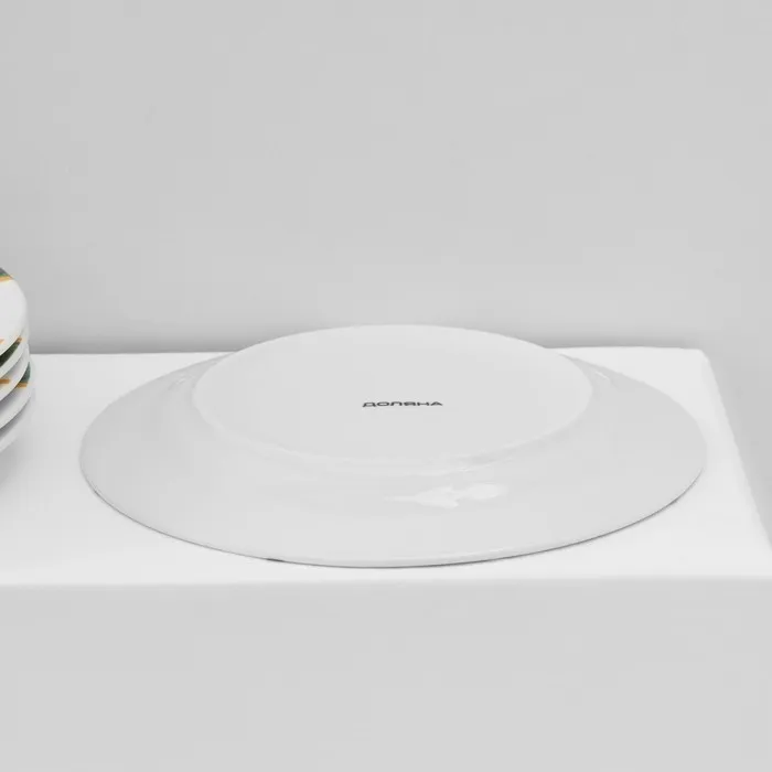 Тарелки Доляна «Малахитовая шкатулка», 18 предметов: 6 тарелок d=20 см, 6 тарелок d=25 см, 6 тарелок глубоких 340 мл, фарфор, белые, зелёные — Характеристики