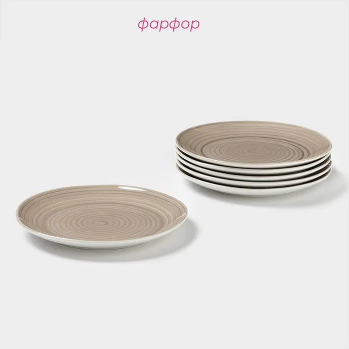 Тарелки Доляна «Палитра», d=19 см, набор 6 шт., фарфор, серые — Характеристики